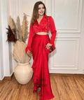 Embroidered Cropped Blazer Paired With A Drape Skirt