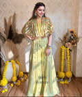 Hand Embroidered Mirror Work Cape And Blouse Paired With Sharara Pants