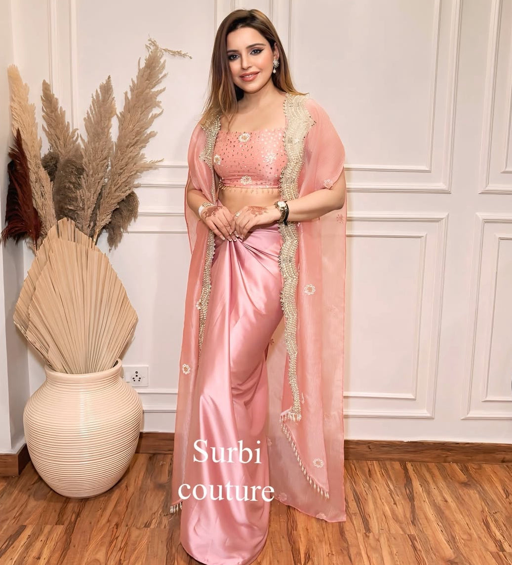 Fabric - Skirt and Blouse :Armani Satin , Cape : Organza