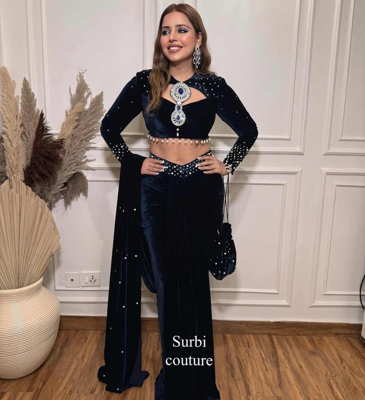 Hand Embroidered Blouse Paired With A Pre Draped Saree